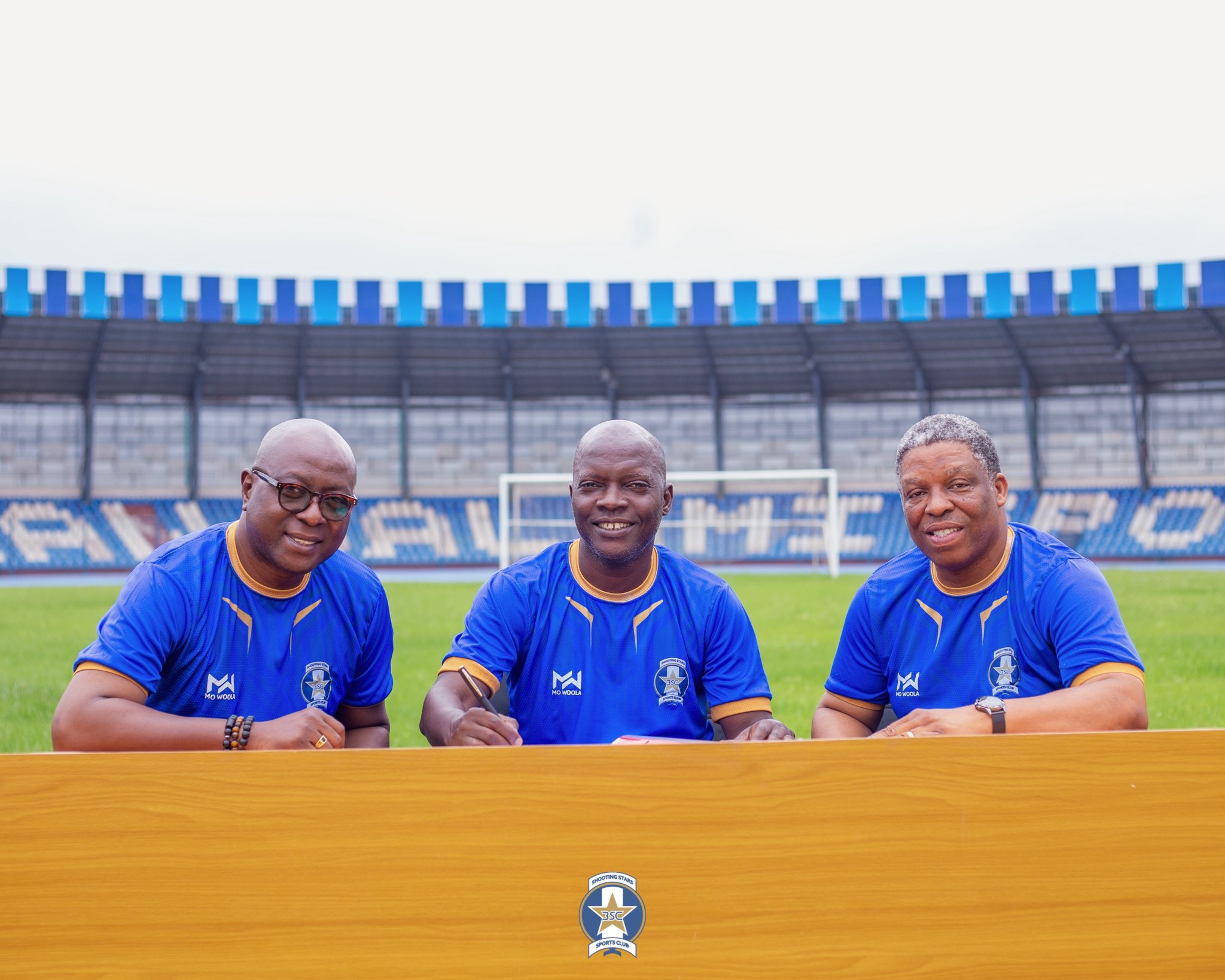 Hon Taiwo Lekan Salami, Chairman Shooting Stars Sports Club, and Mr. Bunmi Fadayomi, Chief Operating Officer, were present at the unveiling of Nurudeen Aweroro as the new head coach of Shooting Stars SC.
